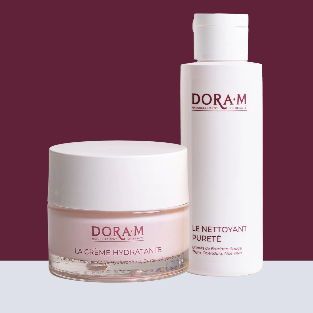 Le Coffret Duo Pureté Hydratation Dora M est une alliance essentielle pour instaurer une routine de soin quotidienne alliant nettoyage doux et hydratation profonde. Il associe un gel nettoyant aux extraits de plantes, formulé pour purifier la peau sans l’agresser ni la dessécher, et une crème de jour à l’acide hyaluronique enrichie en algue brune et eau de source marine. Ensemble, ces soins respectent l’équilibre naturel de la peau, la gorgent d’hydratation et révèlent un teint frais, lumineux et naturellement éclatant.